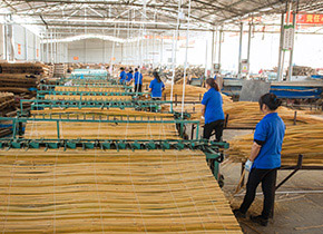 中南神箭投資120萬全自動竹簾竹席生產線,自產竹簾竹席,從而有效的控制竹片的相等厚度和竹片與竹片之間的密度,從源頭上掌控磚托板的密度和厚簿均勻度。