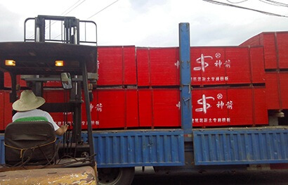 發貨目的地是在本省范圍內的,統一打三條橫向的鐵皮.(俗稱"打三橫")發貨目的地是在外省范圍內的,統一打"三橫兩縱",在縱向再加打兩條鐵皮。發貨目的地是國外出口的,可以據客戶要求特殊定制。所有成包竹膠板都有墊方木,方便卸車時叉車,員車,塔吊等卸貨。我廠建議竹膠板最好為成包裝卸,但有時據車子的情況和客戶的要求,也可散裝。